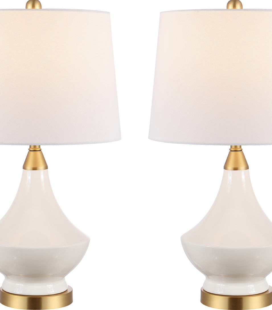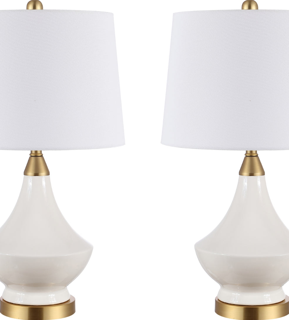 A modern glam interpretation of exotic Arabian pottery, this Marlowe Table Lamp gives any room an eye catching shine. Marlowe's boldly sculpted white ceramic is dramatically elevated with glamorous gold finished accents, making a fabulous statement in contemporary interiors. Sold in sets of two.