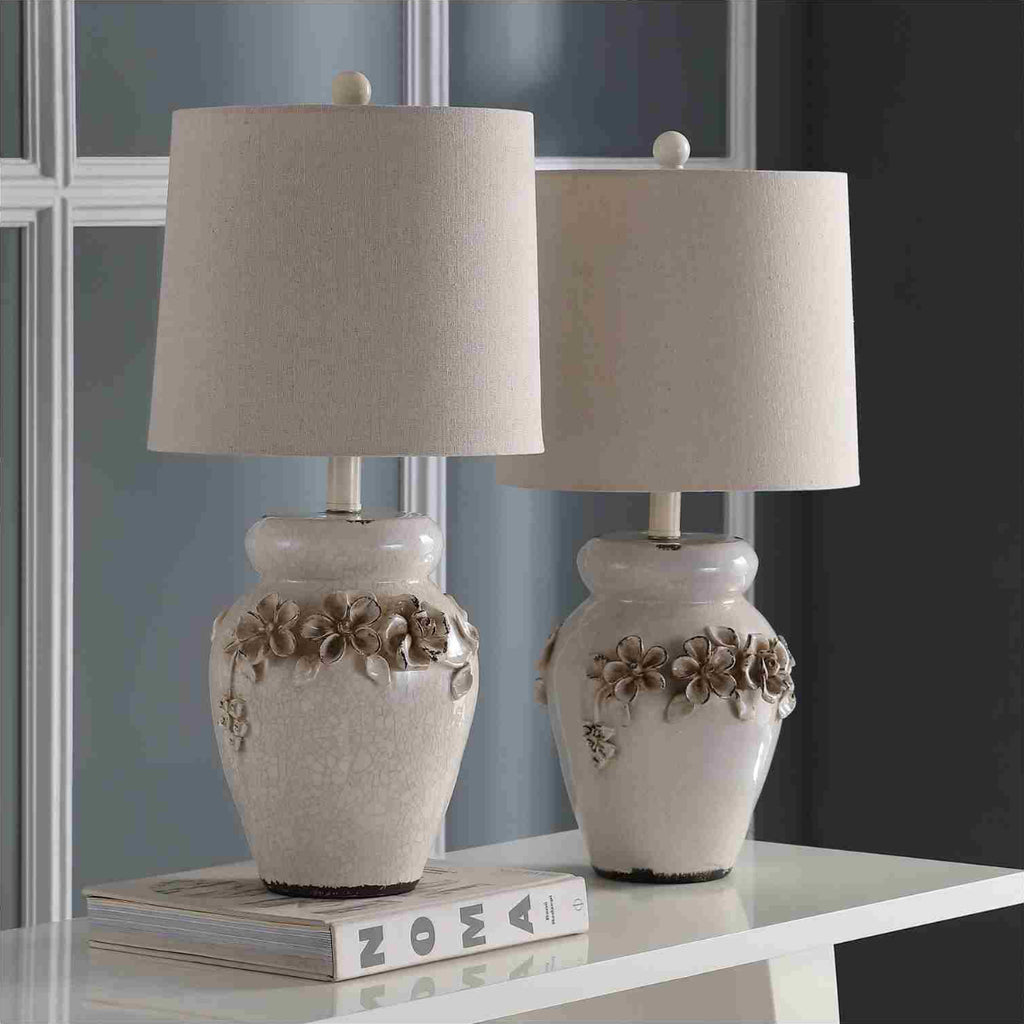 - Ceramic Table Lamps/Nature Linen Hard Shade