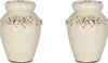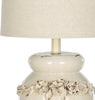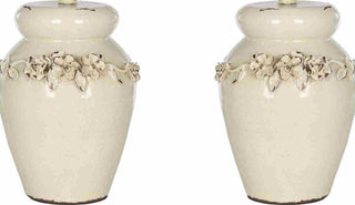 Inspired by antique Tuscan terra bianca pottery, the crackle cream ceramic Marquesa Vase Lamp is adorned with embossed trailing vine leaves. Finished to reveal earthy clay beneath the glaze, this rustic design is complemented with cream cotton shade in linen weave texture and silver fittings.