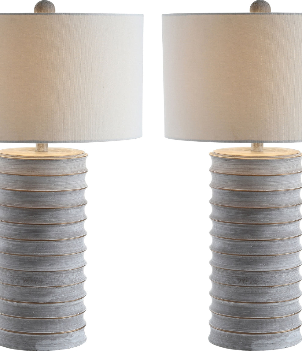 Classically elegant, this set of two table lamps makes a dramatic statement in the living room, bedroom, or entry way. Its white wash finish adds a rustic touch to any modern decor.