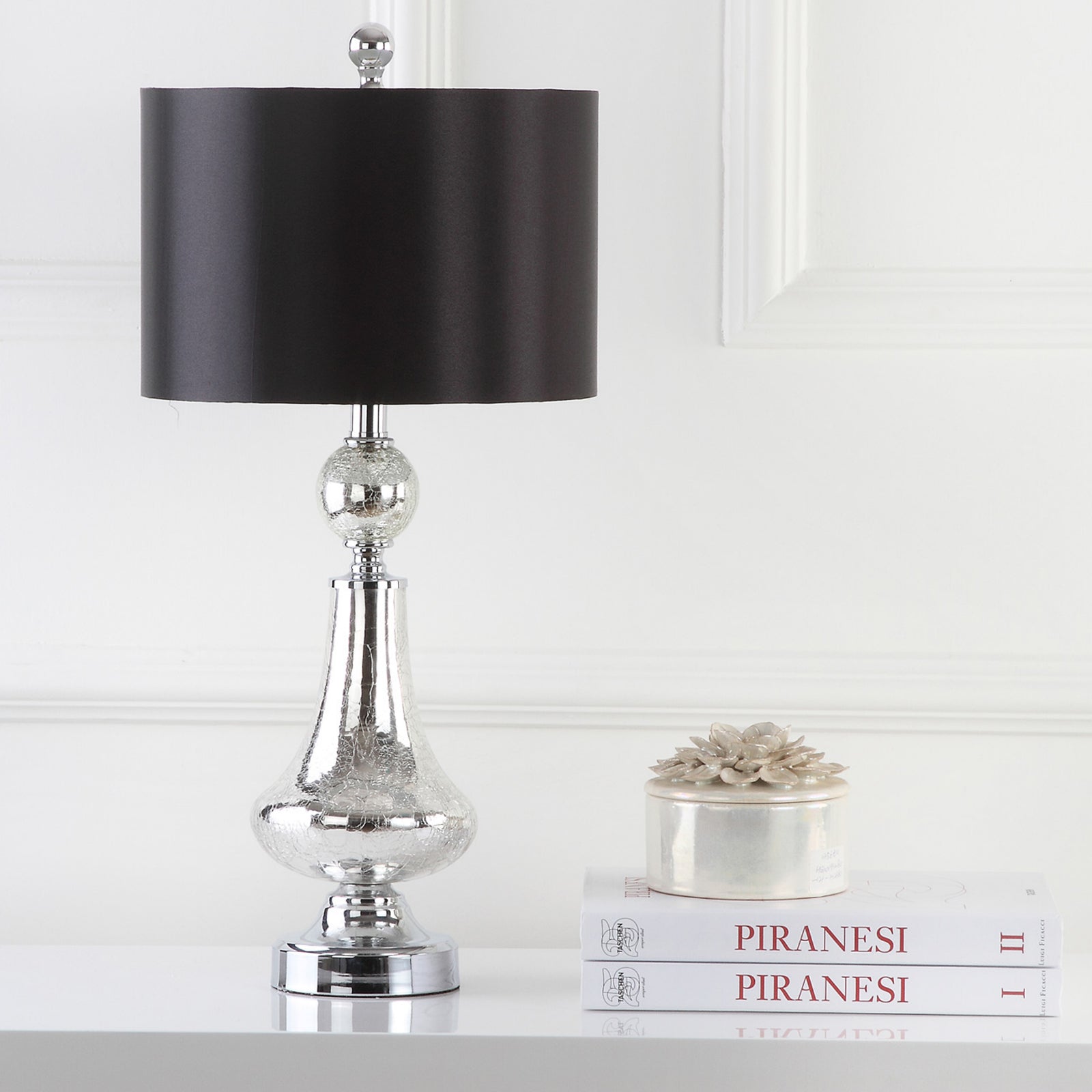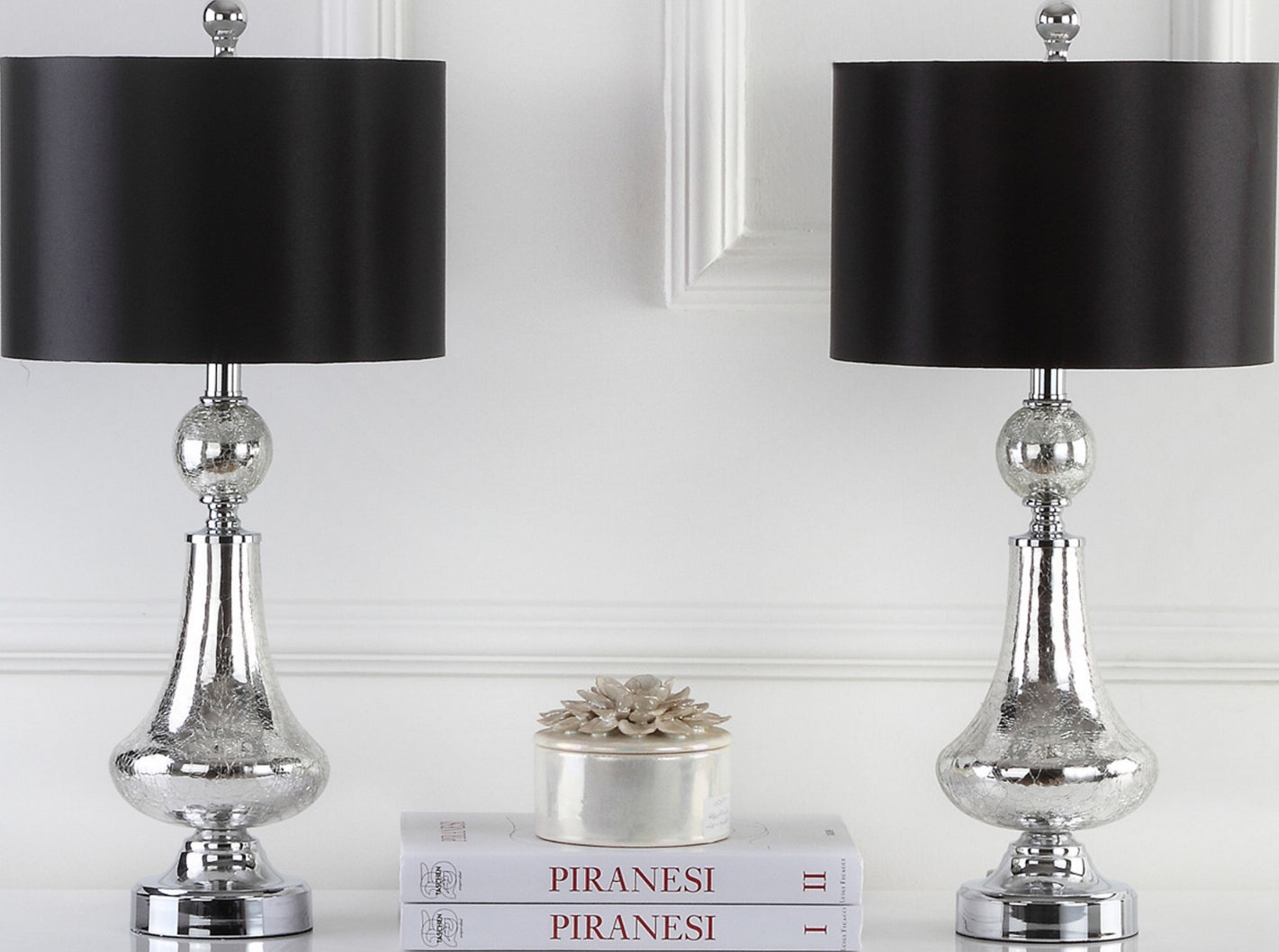 - Mercury Crackle Glass Table Lamps/Black Satin Shades