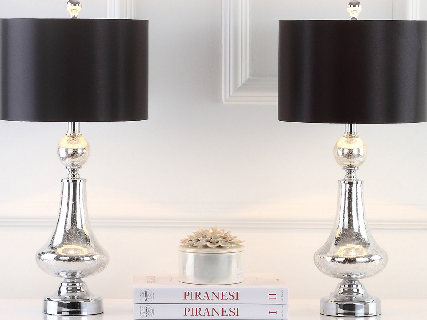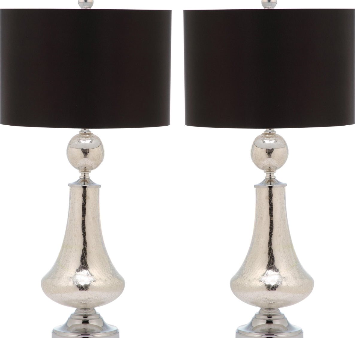 A celebration of Old Hollywood style, this Mercury Lamp (set of two) brims with lavish elegance. Mercury is topped with a sleek black shade, and its ivory crackle glass and silver finial makes this set of two lamps the belle of the ball.