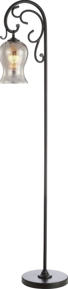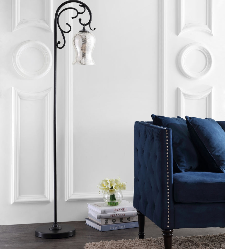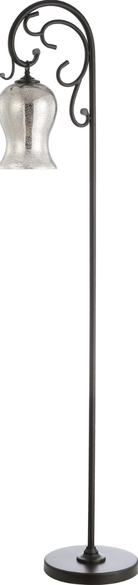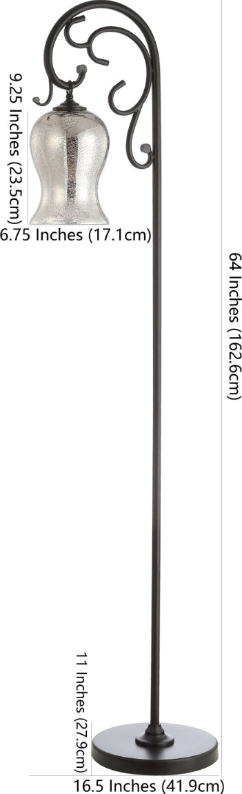 Transform any room into an enchanting interior with this elegant black floor lamp. Finely crafted to showcase its delicate scrolls, this updated spin on the Victorian bridge lamp features a dramatic lantern style authentic silver and ivory glass shade.