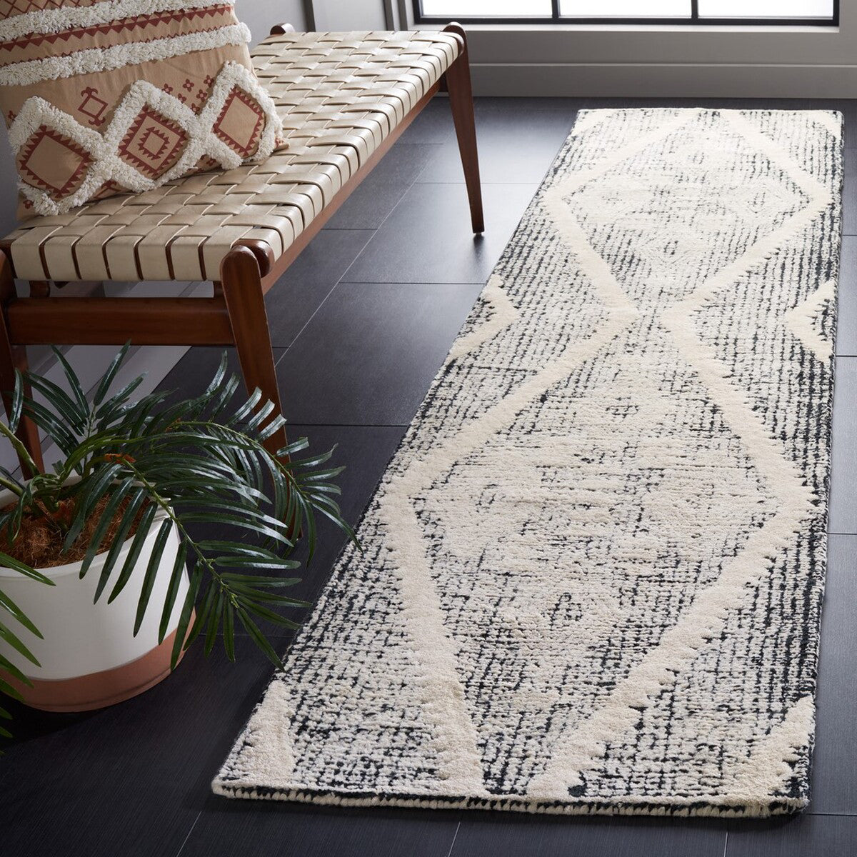 Elevate your home with the sophisticated charm of our Hand Tufted Contemporary Runner Rug, artfully crafted in the vibrant land of India. Measuring 2'-3'' X 9', this runner is an exemplary choice for high-traffic areas, offering both durability and style. The captivating black and ivory colors are elegantly woven into a mesmerizing pattern that draws inspiration from modern geometry, making it a perfect accent for any contemporary interior design.