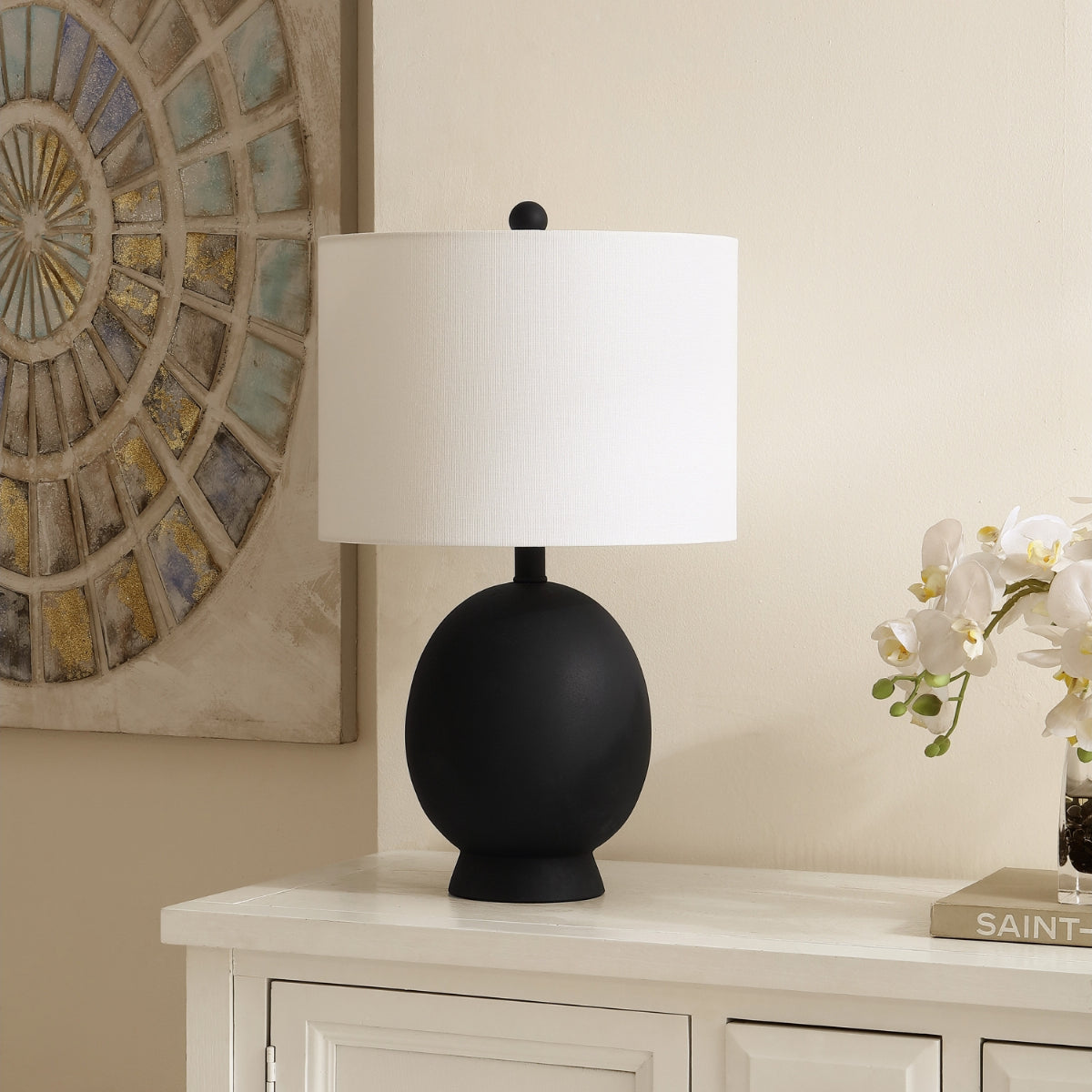 Step up the style of your home with our graceful and charming Muse table lamp. The sleek proportions and rounded contours of our table lamp bring a dose of elegance to any surface. The base showcases sleek curves and a sturdy pedestal to attain a graceful and stately presence. It is finished off with a white drum shade to impart a soft ambient glow. Elevated with a neutral yet high-contrasting finish, our table lamp remains a charming and versatile addition to your nightstand, console, or end table.