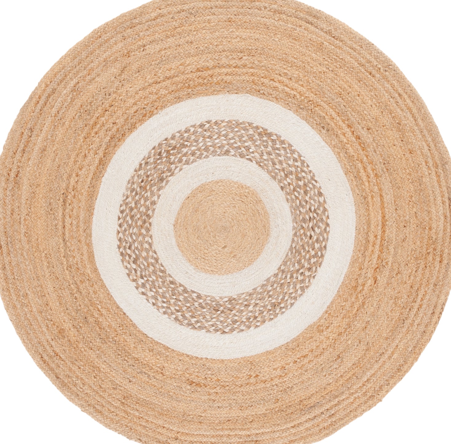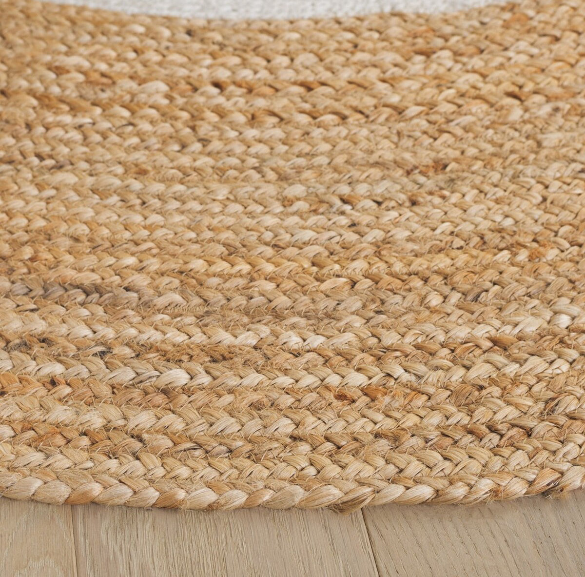 Elevate the elegance of your living space with this beautiful 3' x 3' Natural/ Ivory colored, round area rug. Expertly handwoven in India, this unique piece features a sleek 1/4'' height, adding an understated modern touch to any room. Constructed meticulously and skillfully of high-quality jute, this rug is not just attractive but also irresistibly soft to touch. Both stylish and versatile, it perfectly complements a variety of decors, creating a cozy and warm atmosphere that's sure to impress. Its natural and ivory hues evoke a sense of tranquillity and purity. Experience the marvel of Indian craftsmanship with this round area rug, a superb addition to any home or office.