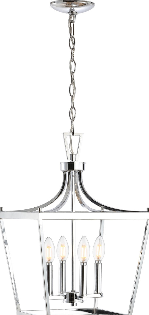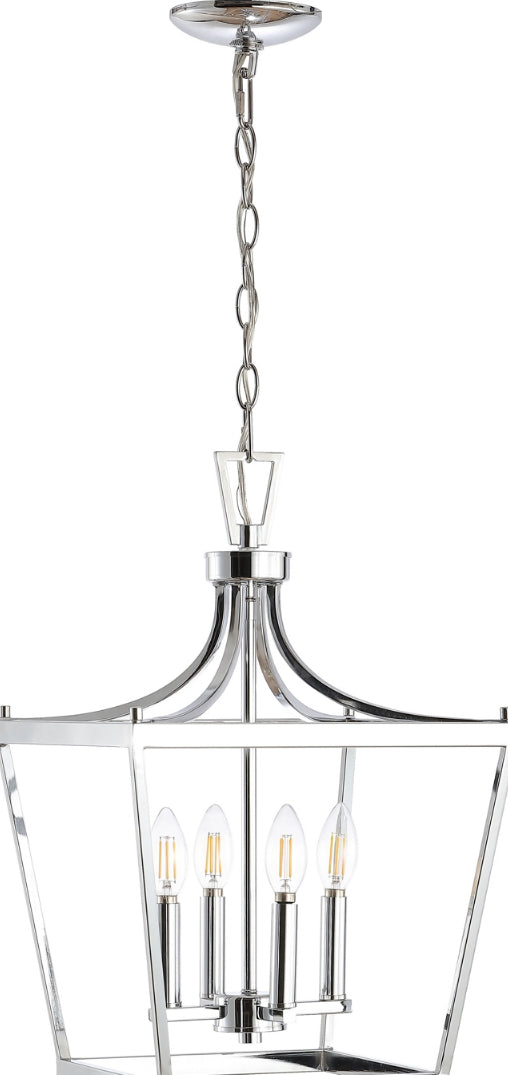 Designed with style and substance, this classic pagoda style 4 light pendant elevates any interior with its new spin on the traditional lantern. The chrome finish highlights its metal craftsmanship, gracious curves, and suspended interior lights.