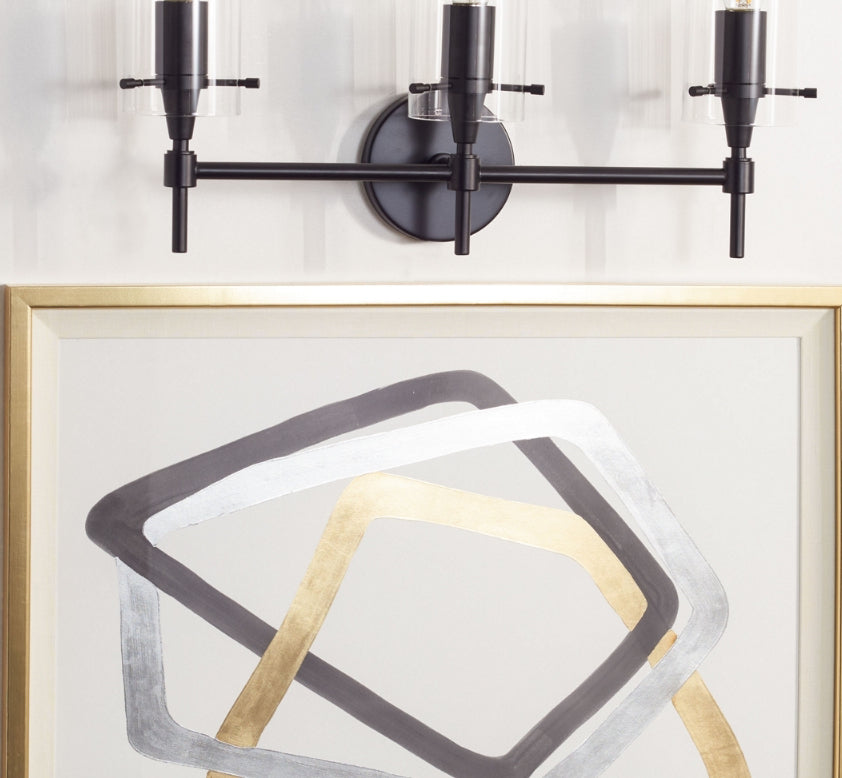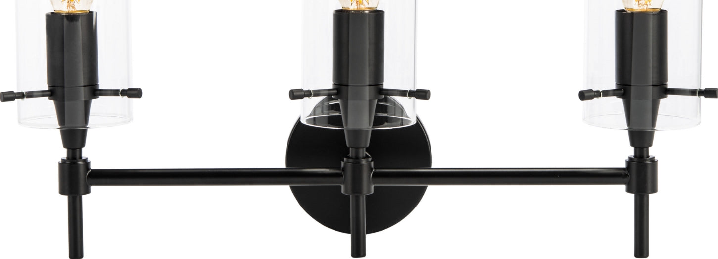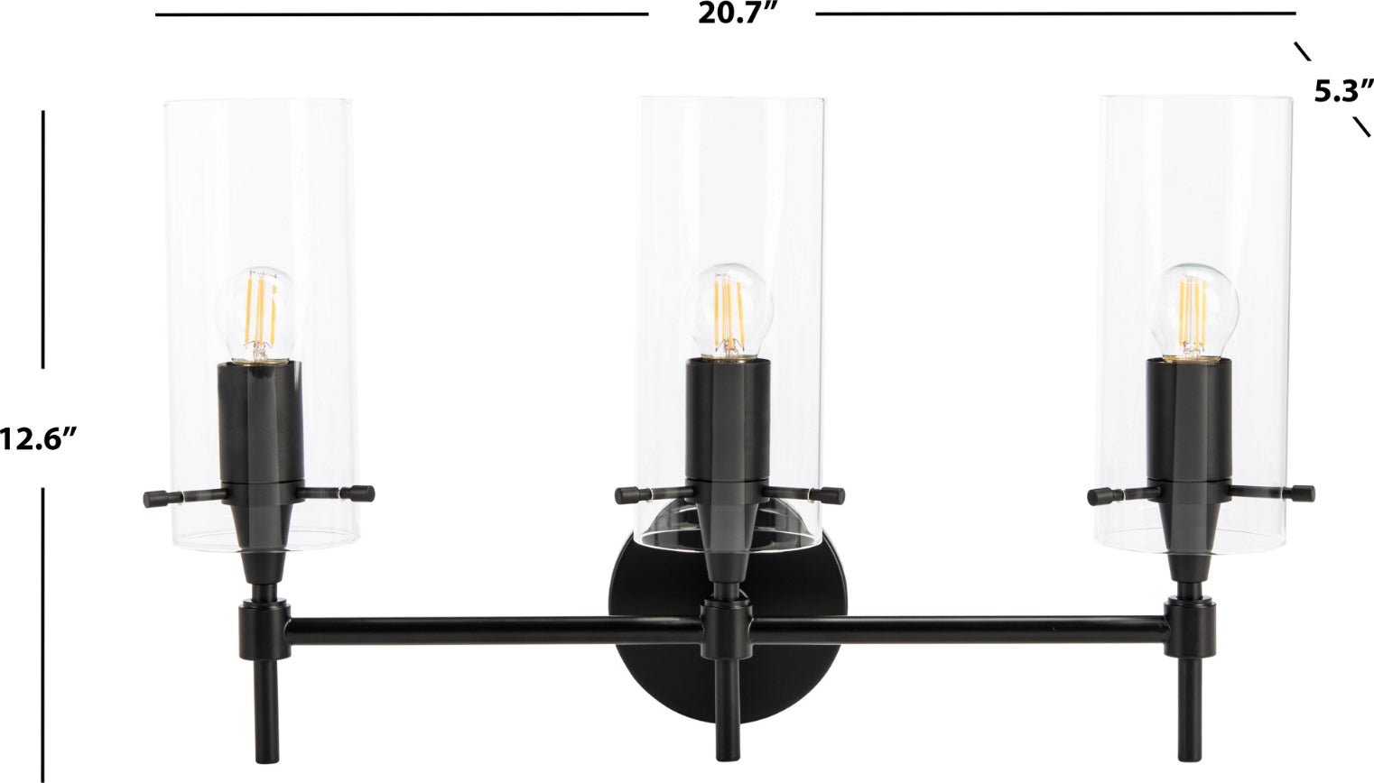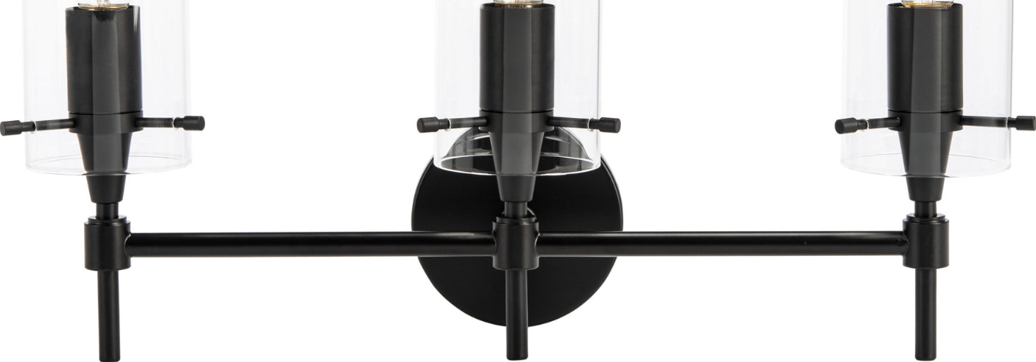 Designed to cast a sensational shimmer in any interior, this Norala Vanity Sconce is at once modern and classic. Norala's three glass shades and industrial inspired bulb are highlighted by a matte black frame, making it the decor smart choice above a mirror in both the boudoir and bathroom.