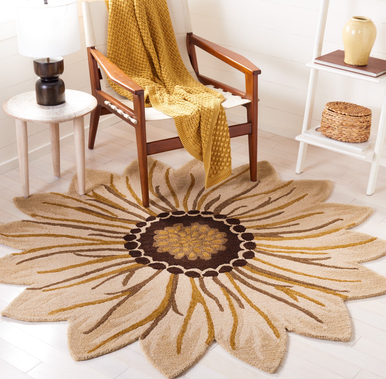 Presenting our exquisite 3' x 3' Round, Gold and Beige Area Rug ? a beautiful amalgamation of tasteful elegance and supreme quality. This plush rug stands at a height of 1/2'', guaranteeing a soft and luxurious feel underfoot. Hand-tufted meticulously in India, it boasts advanced craftsmanship with every fiber! The unique blending of 80% Wool and 20% Cotton makes the rug incredibly durable and comfortable. An added cotton backing ensures stability and resistance to slip. Its captivating floral design, rendered in soothing hues of beige and gold, promises to bring a regal touch to any setting. Get ready to indulge in the richness of Indian textiles with this magnificent piece of home decor!