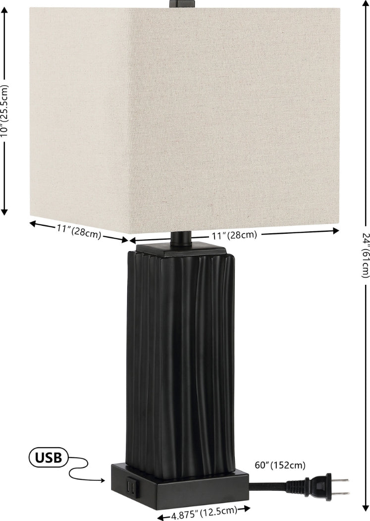 Give a contemporary update to your tabletop with the sleek style and sensuous details of our Park table lamp. The clean lines and crisp angles of the lamp are softened with an organic and uneven ribbed detail. Combining modern style with an artisanal feel, our table lamp brings graceful style and drama to any corner. It features a beautiful oatmeal shade to diffuse a soft and warm glow upon your desk, console, or nightstand. Our stylish table lamp includes a built-in USB port to keep your devices charged and ready at all times.