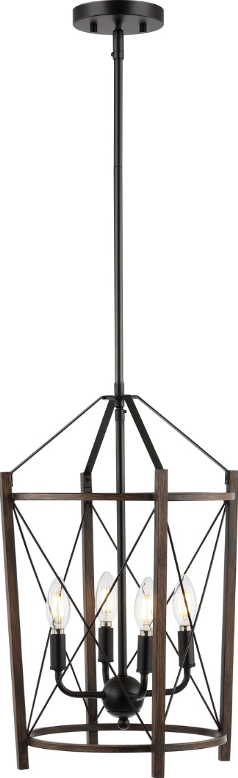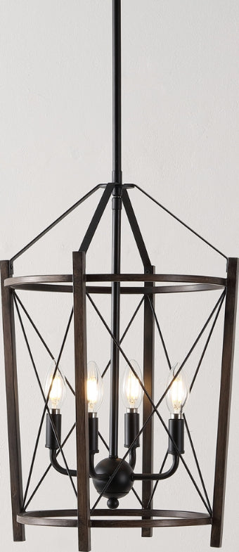 Add a dose of charm and character to any corner with our Peltier pendant. A geometric and airy silhouette offers a modern update on a classic lantern. The pendant features an open frame and crisp angles to attain a sleek architectural appeal. It is accented with black metallic hardware and a dark walnut finish for added depth and dimension. A cluster of candle-style bulbs accentuates the traditional charm of our pendant. It emits an unfettered ambient glow to elegantly light up a hallway, dining space, or kitchen.