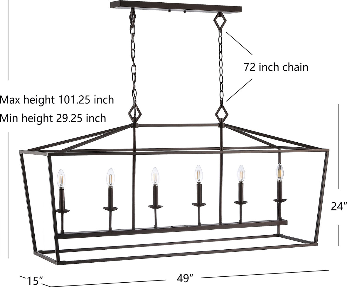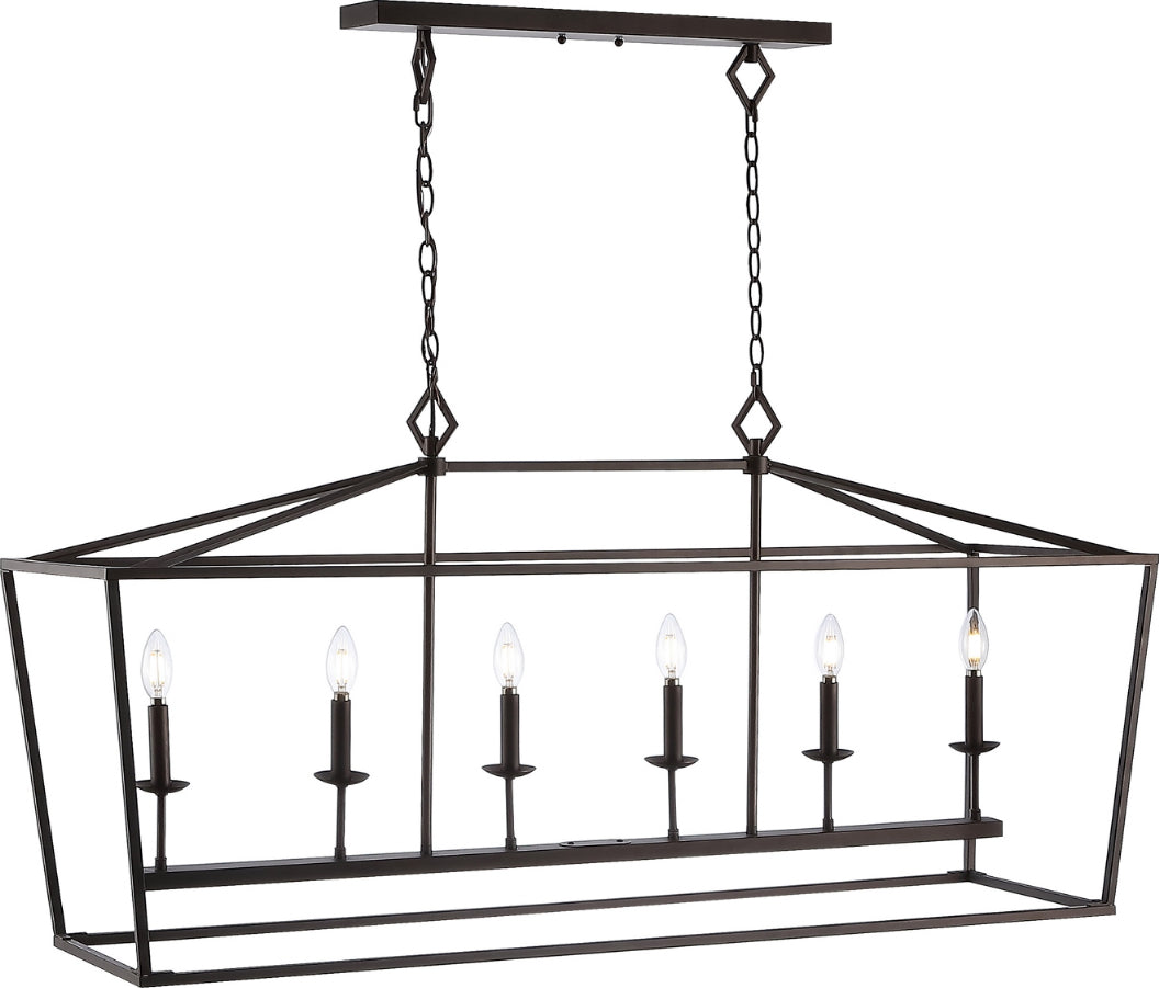 A new classic, this updated version of the traditional 6 light pendant creates a warm, welcoming glow over any dining room table with its soft, ambient lighting. Designed to highlight its expert craftsmanship, its oil rubbed bronze finish is timeless.