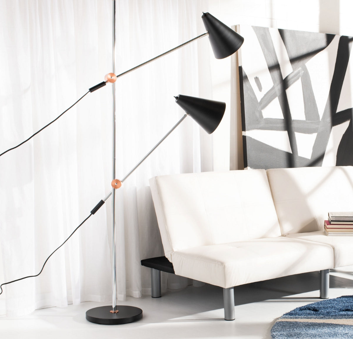 Inspired by the designer furnishings appointing the office of the head of the foremost modern art gallery in Barcelona, this contemporary floor lamp is a classic. Its dynamic sculptural form is crafted with chrome and finished in sleek black and gold.