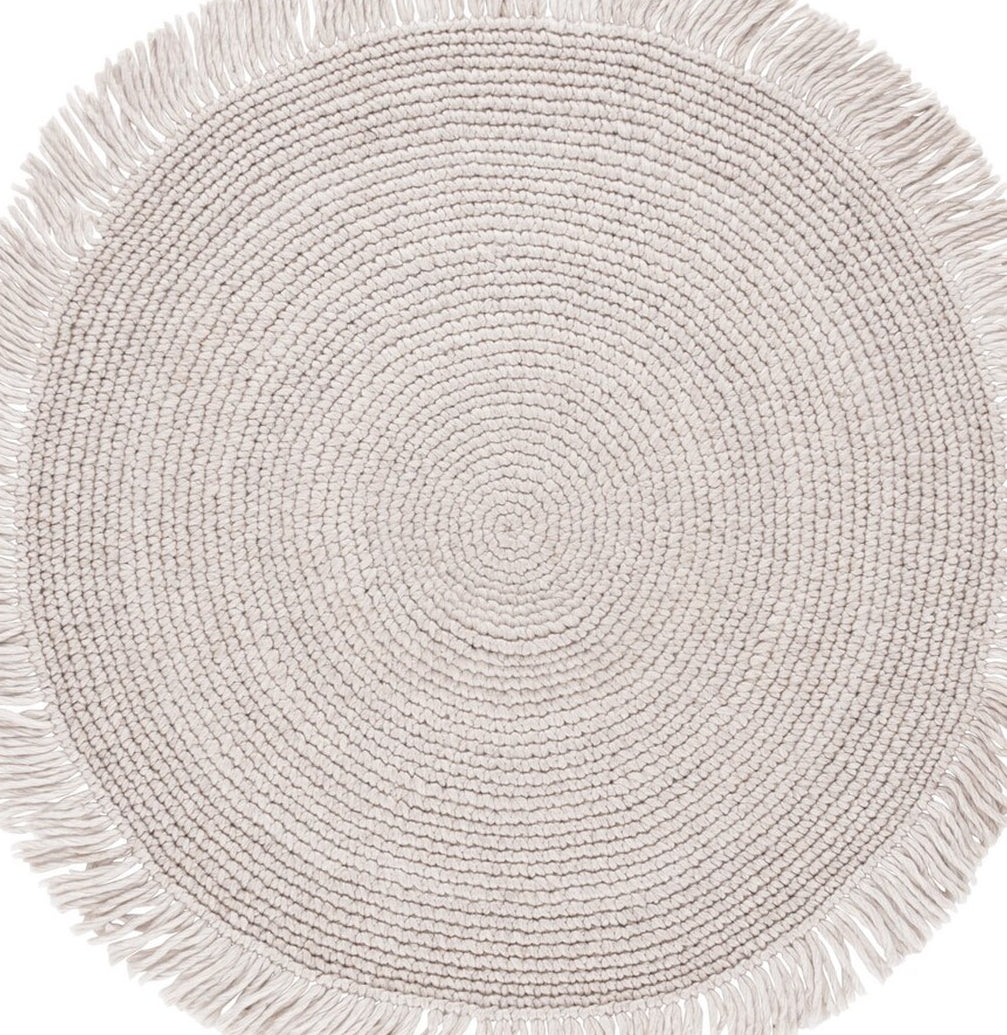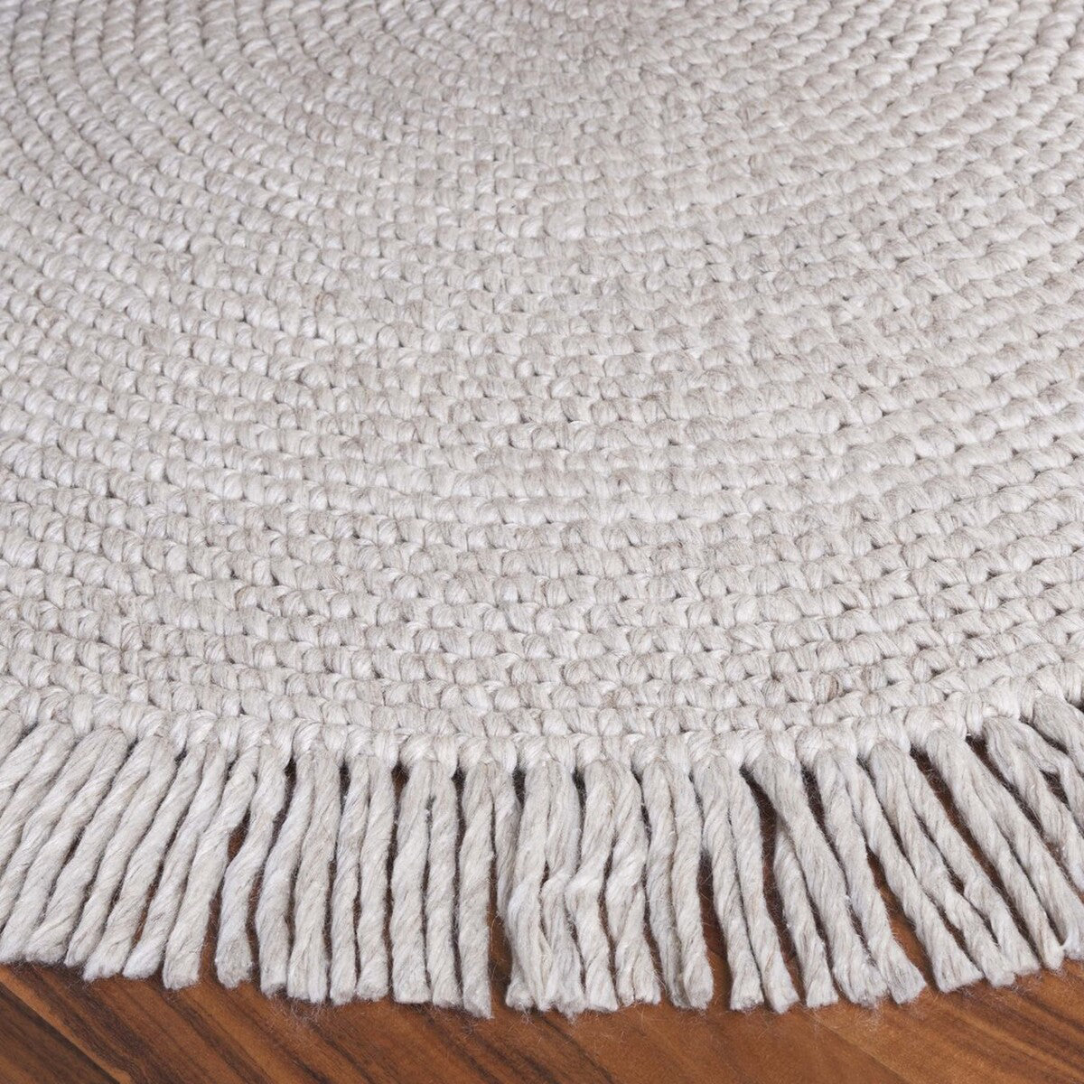 Introducing our elegant handwoven area rug, a tasteful addition to any room seeking a touch of simplistic charm. Crafted with meticulous care in India, this round, light beige rug spans a comfortable 3 feet in diameter, making it an ideal choice for accentuating small spaces or adding a soft touch to your favorite nook.