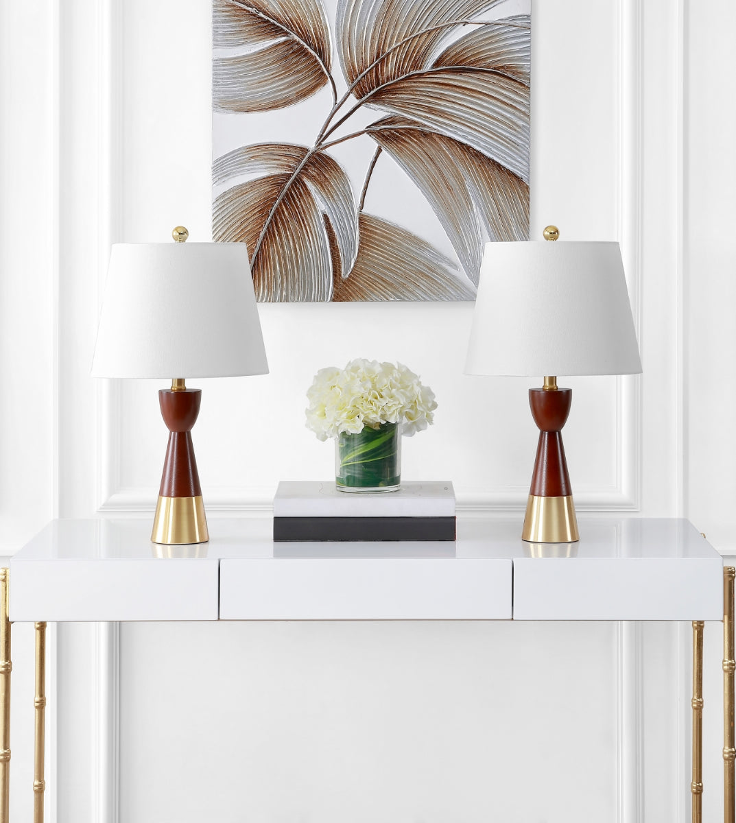 A more geometric interpretation of the classic hourglass figure, this Renni Table Lamp is designed to bring warm elegance to any d'cor. Renni's rich brown body and brass gold accents are softened by a white linen shade, its subtle angles adding to Renni's sense of motion. Sold in sets of two.