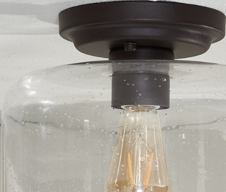 Modern minimalism gets an artistic upgrade in this fabulous Rianne Flush Mount. Rianne's stepped black base and retro-style bulb are elegantly elevated by a clear seeded glass shade, making it a must-have for today's chic interiors.