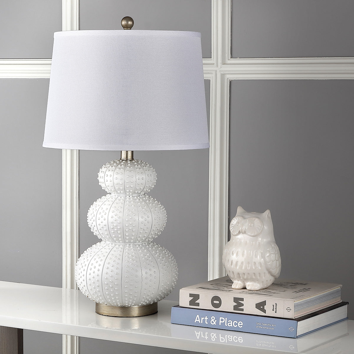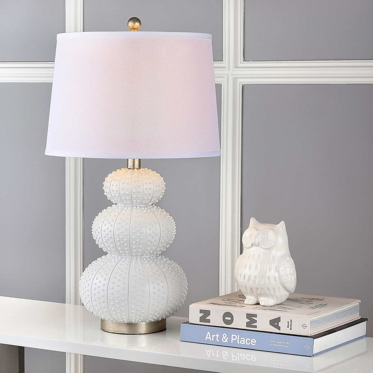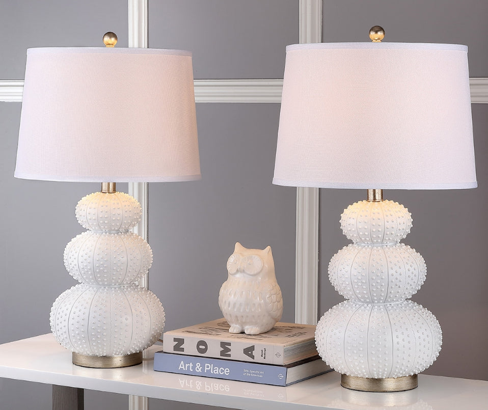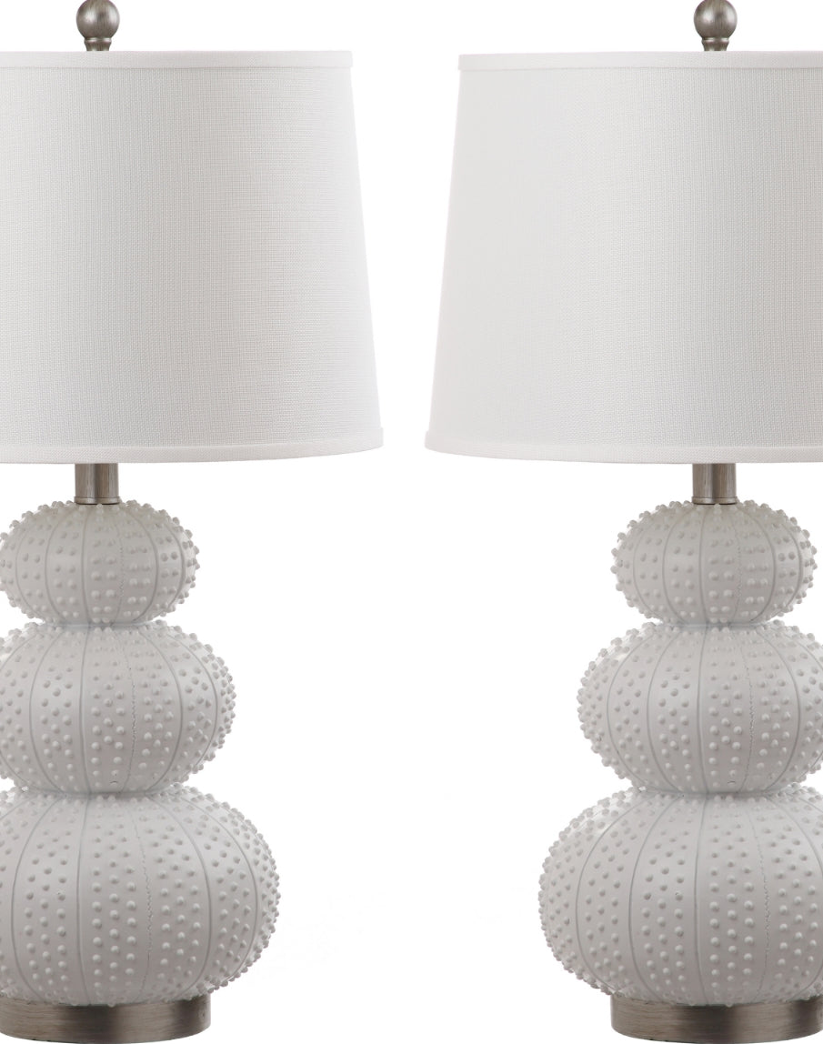 The striking stippled texture and rippling silhouette of this Rita Table Lamp redefines modern design with startling visual appeal. Revitalizing the triple gourd outline for today's daring interiors, Rita's pure white finish ensures it perfectly enhances any room's color palette. Sold in sets of two.