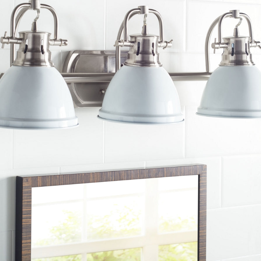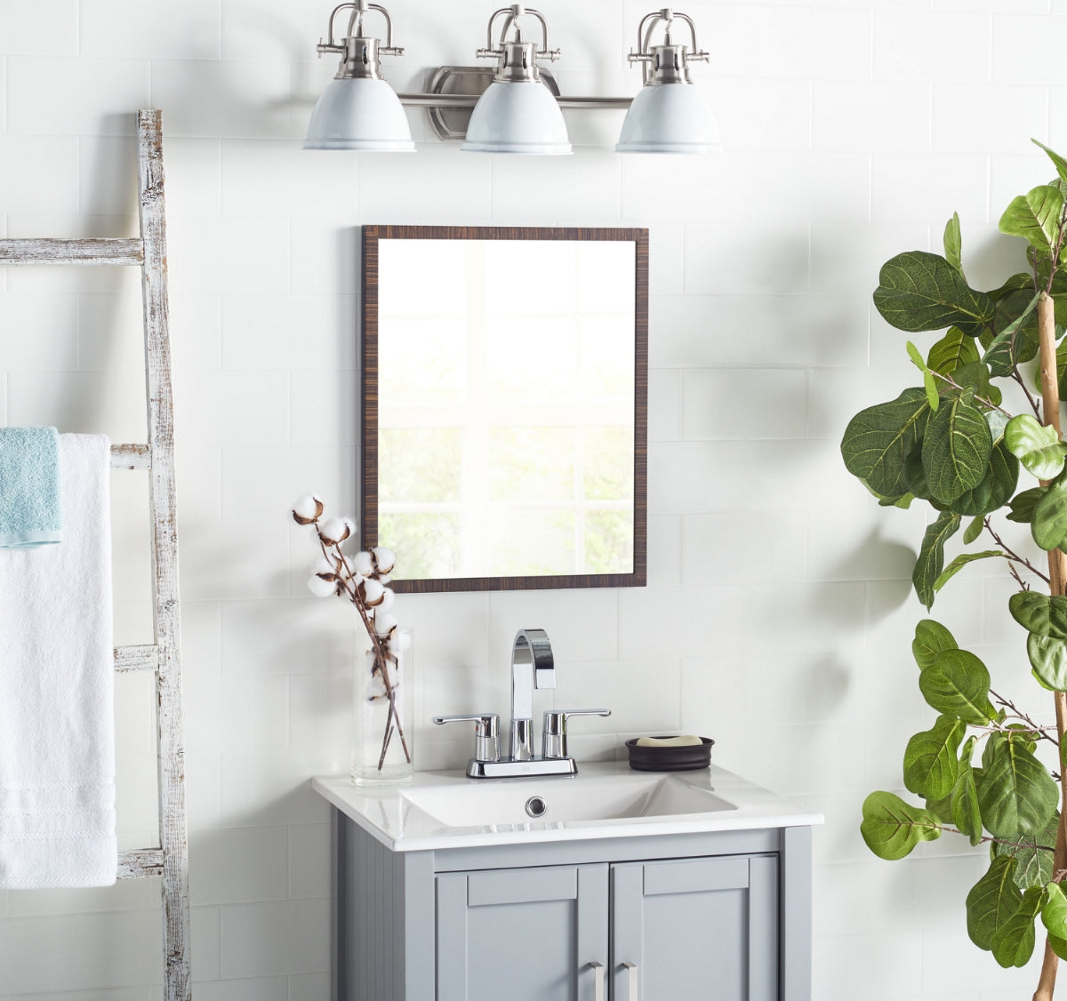 A perfect blend of form and function, this classic three light sconce is an investment for the bathroom. Constructed with the strength and durability of metal, its timeless nickel finish and white shade complement any decor.