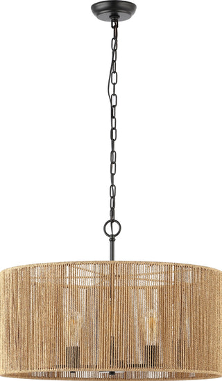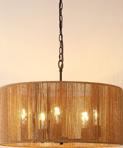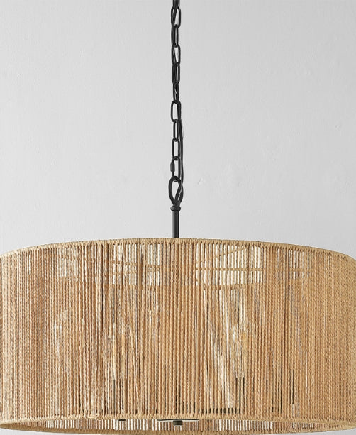 Enliven your home with the modern and breezy charm of our Rylumi pendant. The minimalist and modern profile of our pendant is updated with rich textures. Paper ropes are wrapped around the drum shade to complete its light and airy look. Our pendant remains a relaxed and easy fit for a wide range of styles and decor. It filters a warm and pleasant glow to illuminate and make a breezy statement above your dining table, kitchen island, or coffee table.