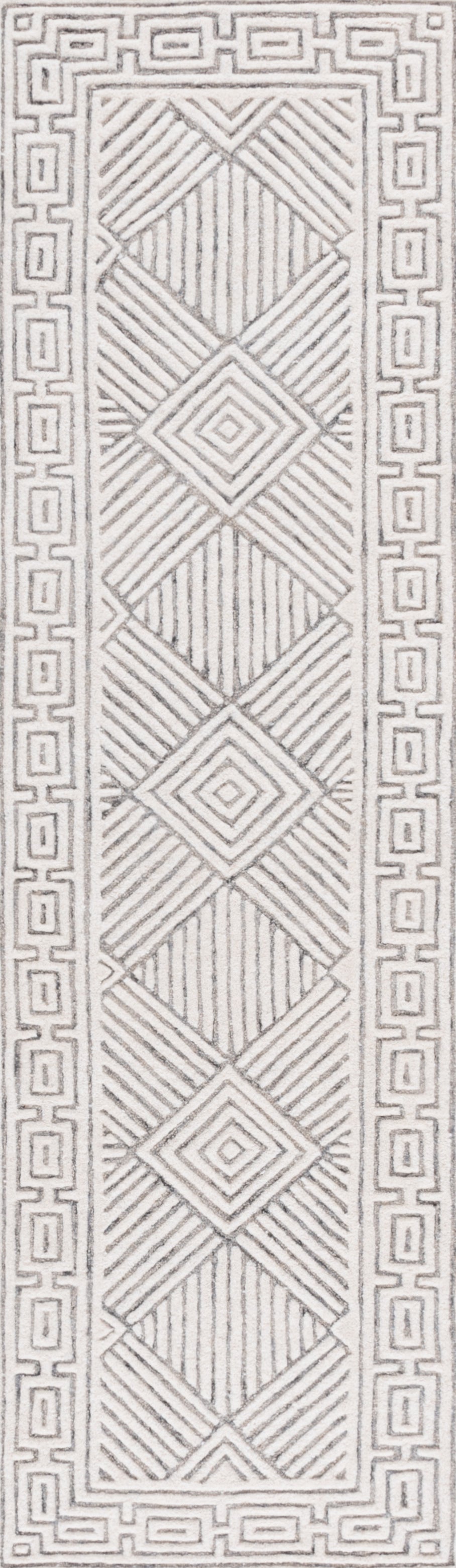 Elevate your living space with the timeless sophistication of our Hand Tufted Wool and Cotton Runner Rug. Skillfully crafted in India, this luxurious runner measures 2 feet 3 inches by 8 feet with a comfortable 1/2 inch pile height, perfectly blending form and function for your home.SOH890F-4,10,SOH890F,79,7,'198162203183,SOH890,SOHO 890,SOHO,GREY / IVORY,Gray,Geometric,4' x 6',Small Rectangle,1/2'',Hand Tufted,''80% Wool