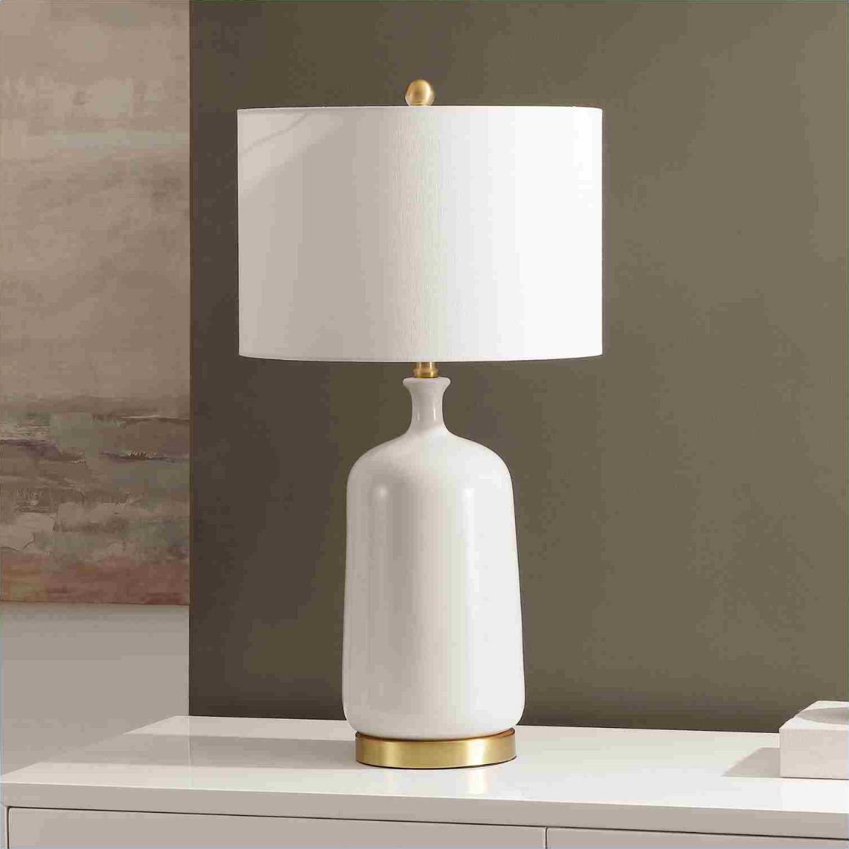 Introducing the Stevie Table Lamp, a seamless blend of elegance and functionality to illuminate your space. Crafted with a creamy ceramic body and complemented by a sleek brass base, this lamp adds a touch of sophistication to any room. The fabric shade diffuses light gently, creating a warm ambiance perfect for reading, working, or relaxing. Brighten up your living room, bedroom, or office with the stylish charm of the Stevie Table Lamp.