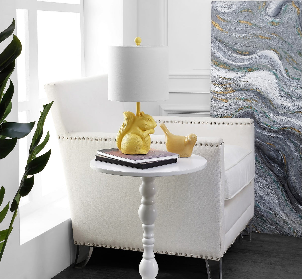 Cute as a button, this playful Sunny Squirrel Lamp brings an instant smile to any face. Perfect for a kid's bedroom, play room, or even as a statement piece in eclectic decor, its sculptural ceramic and sunshine yellow finish illuminate interiors with a touch of whimsy.