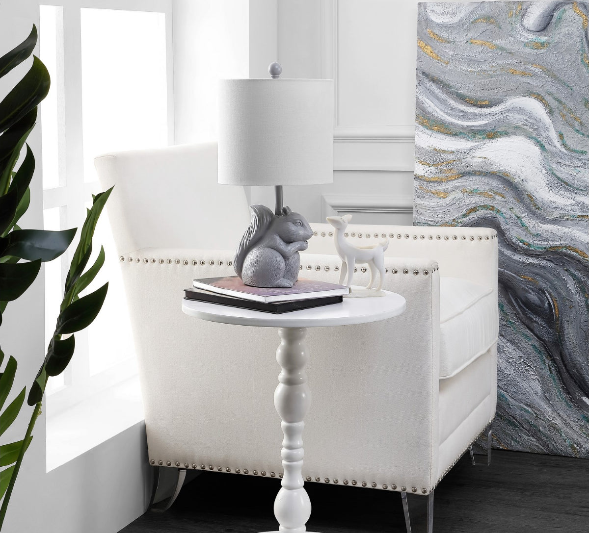 Cute as a button, this playful Sunny Squirrel Lamp brings an instant smile to any face. Perfect for a kid's bedroom, play room, or even as a statement piece in eclectic decor, its sculptural ceramic and soft grey finish illuminate interiors with a touch of whimsy.