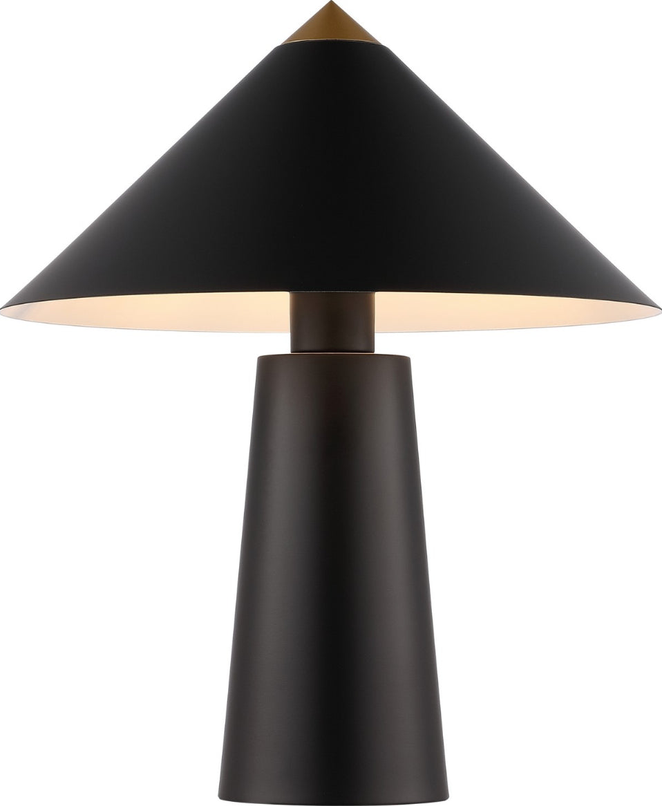 Make a refined and chic statement with our Syuna table lamp. Showcasing a sleek and sculptural profile, our table lamp lends a bold and modern tone to any room. Its clean-lined pedestal is topped with a striking cone-shaped shade. Accented with gold, our table lamp adds polished and layered lighting to any room. Its metallic shades deliver focused light to uplift both style and functionality of your home. Our table lamp remains an eye-catching and elevated addition to your nightstand, desk, console, or side table.