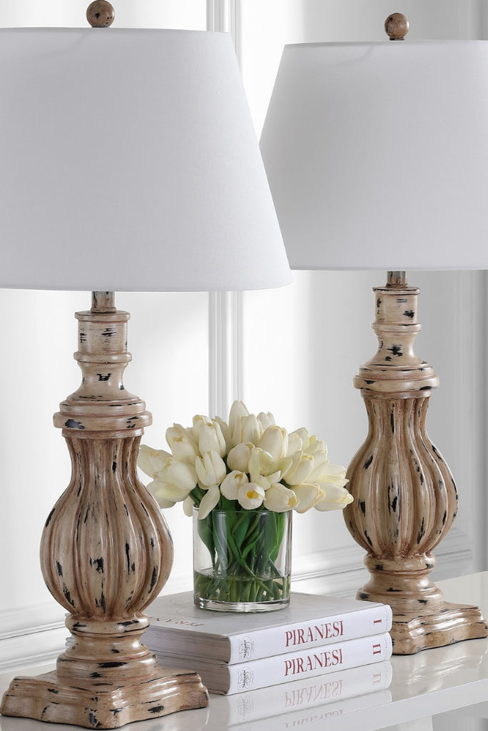 Substantial and chic, this luxurious antique brown table lamp upgrades any room with its natural beauty. Its ornate curves and delicately carved design creates the depth of classic sculpture. Sold in sets of two.
