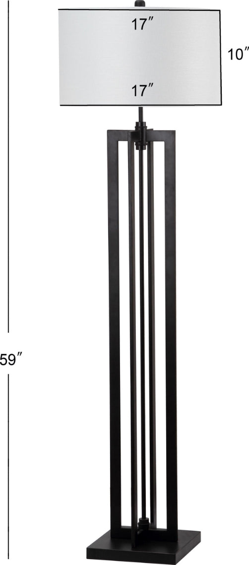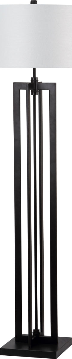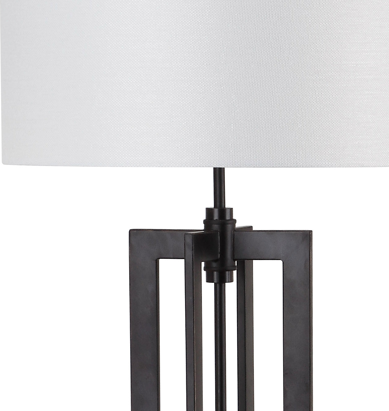 Evoking Craftsman style but with a modern edge, the Tanya Tower Floor Lamp is crafted of artfully placed bands of metal. The geometric style of the chic black base and final are accented with a white textured cotton drum shade for crisp contrast.
