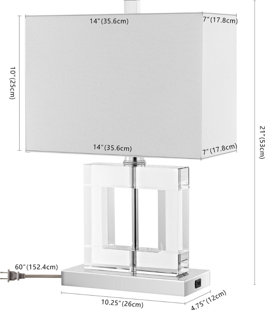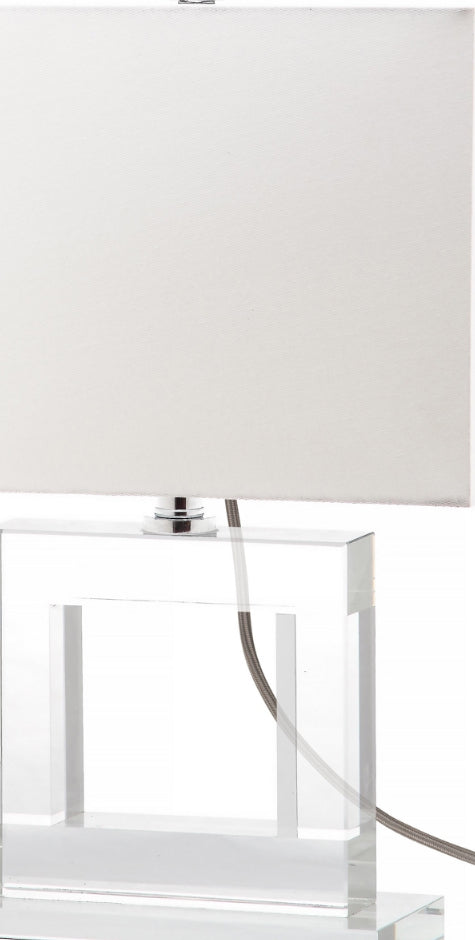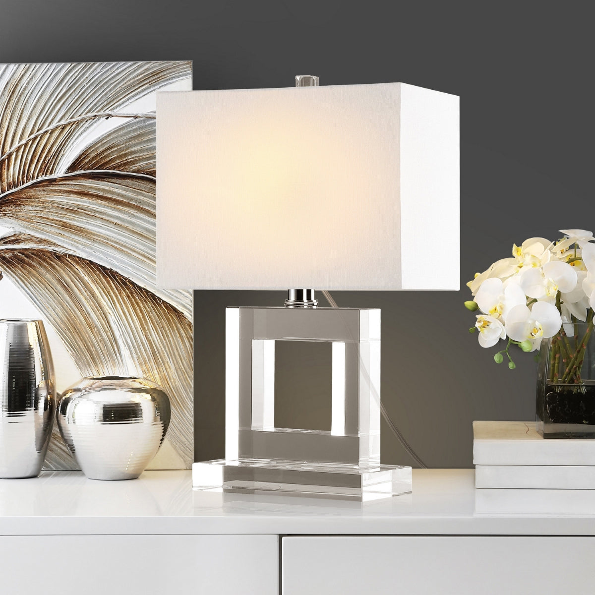 Geometric and glamorous, the Town Square Crystal table lamp makes a brilliant statement in transitional and contemporary rooms. From its square cutout crystal base and finial to the squared white shade, Town is sophistication personified.