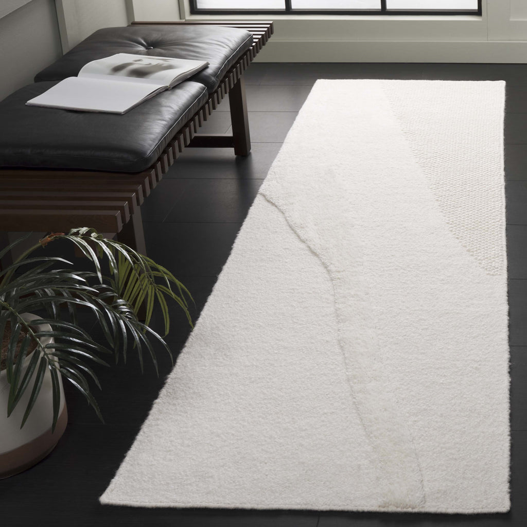 The Safavieh Vermont Rug collection consists of 50% WOOL / 50% COTTON pile woven in a wonderful Hand Woven weave. With a beautiful color/pattern combination, our only complaint is that Safavieh didn't make more of them.