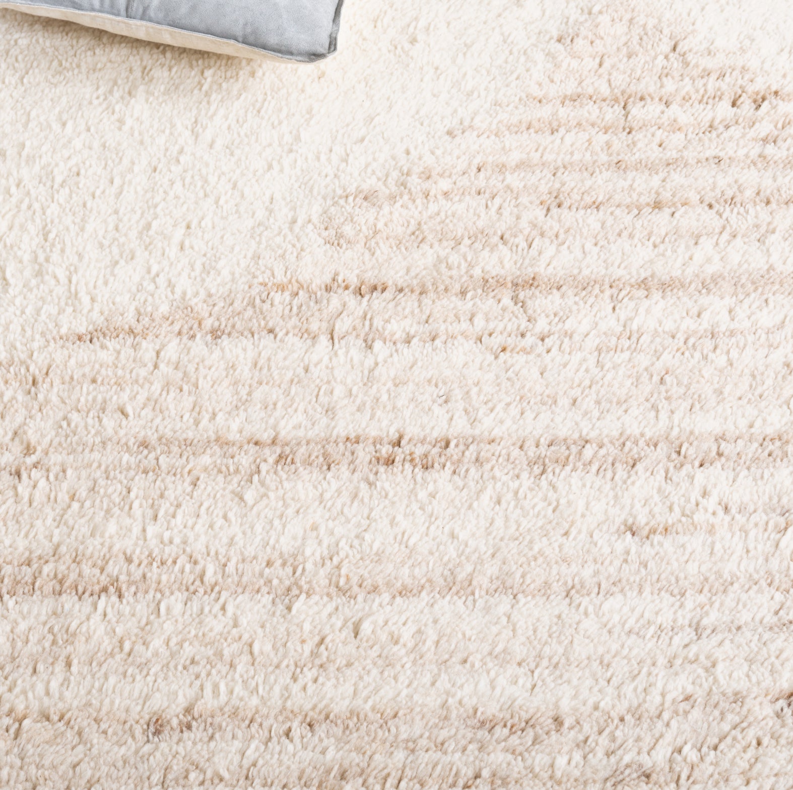 The Safavieh Vermont Rug collection consists of 50% WOOL / 50% COTTON pile woven in a wonderful Hand Woven weave. With a beautiful color/pattern combination, our only complaint is that Safavieh didn't make more of them.