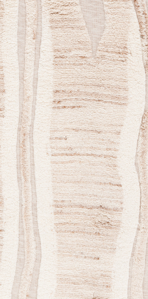 Elevate your living space with this exquisite hand tufted runner rug, meticulously crafted in India. Designed to enrich your home with its modern style, the rug boasts a serene blend of beige and ivory hues, creating a warm and inviting atmosphere. The 2'-3'' X 8' dimensions make it an ideal accent for hallways, entryways, or any elongated area seeking a touch of elegance.