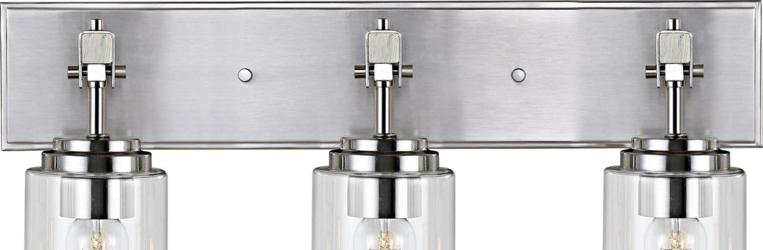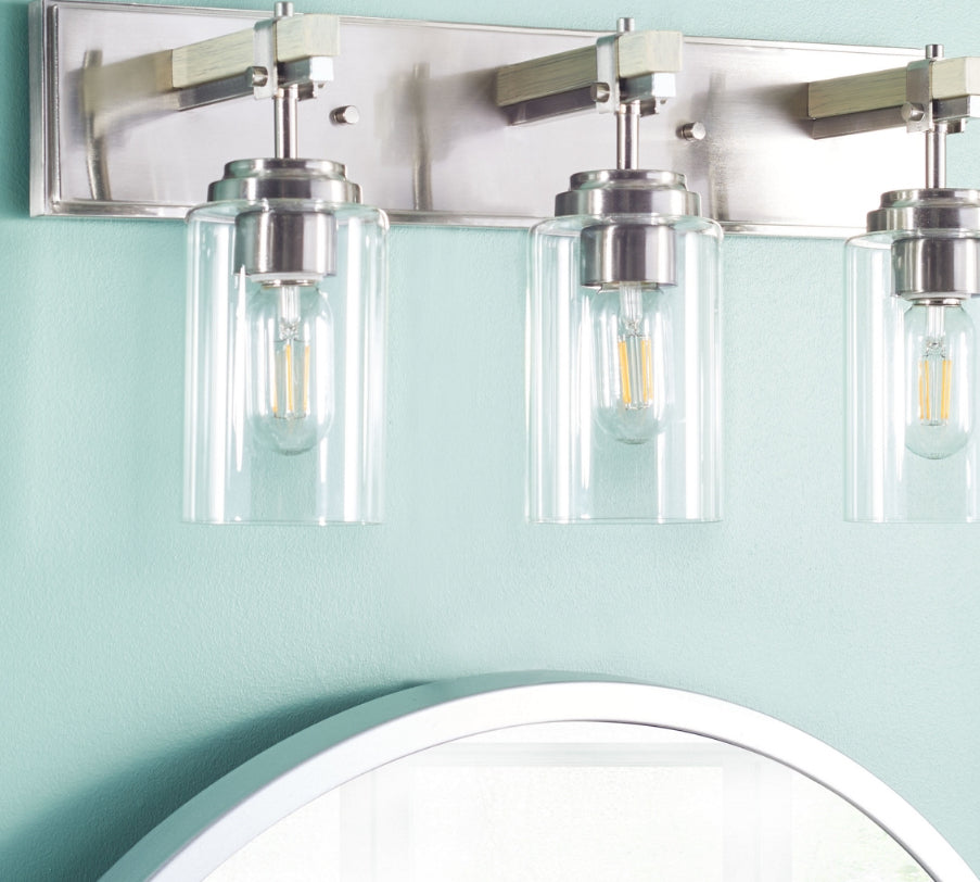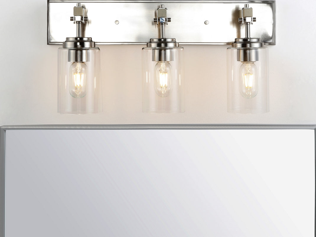 Transform any bathroom into a deluxe urban spa with this contemporary Warley Wall Sconce. Warley's hurricane-style lamps and decoratively exposed hardware make an industrial-chic statement, while its shining nickel finish adds a touch of glamour to your interior.