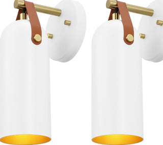 Add chic and modern lighting to your home with our stylish Westley wall sconces. Showcasing a sleek profile and elegant details, our wall sconces lend a chic and fashionable edge to any room. Its sleek cylindrical shades hang from leather straps to make a stunning statement. Featuring a white metallic finish and gold accents, our wall sconces lend sophisticated drama to a variety of styles and decor. Its metallic shades diffuse light vertically to create a soft, focused glow in your bedroom, home office, or living space.