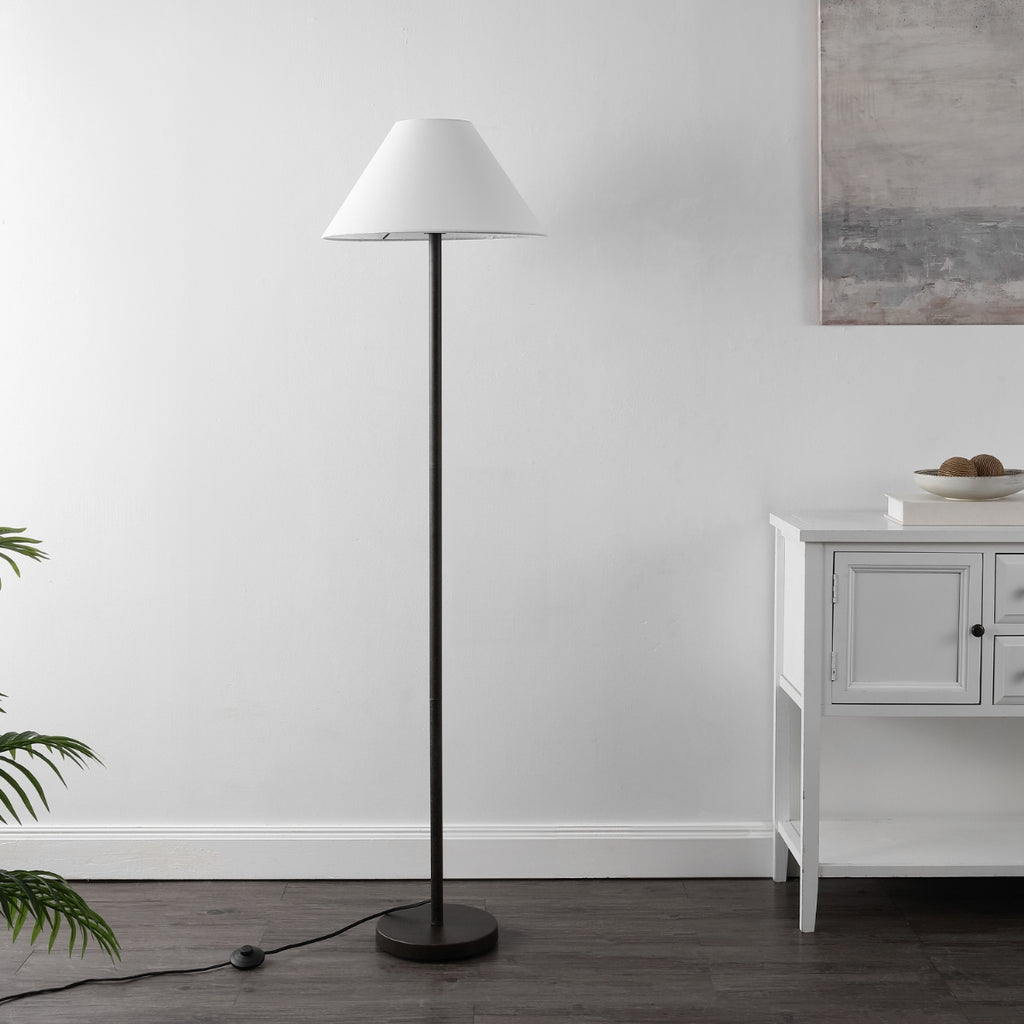 Illuminate your space with the sleek and modern Zaire Floor Lamp. This elegant lighting solution features a strong metal body finished in a versatile black hue, providing a blend of durability and style that seamlessly integrates with any decor. Topped with a tasteful fabric shade, this lamp casts a warm, inviting glow for both ambient and task lighting.