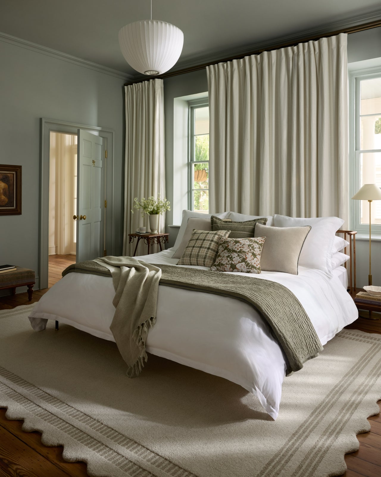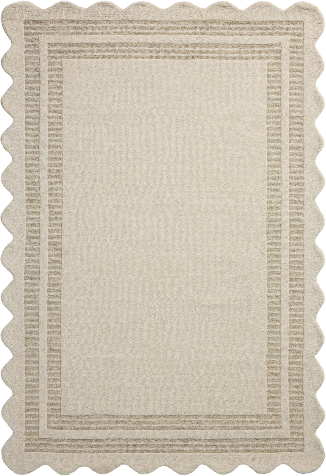 The Scottie Collection from Chris Loves Julia x Loloi is a hand-tufted wool area rug with a playful scalloped edge and lower-pile, striped border for a touch of structure. The rugs overall pile is thick and plush, available in easygoing earth tones and neutral colorways. This collection is hand-tufted of 100% wool in India and Goodweave-certified, ensuring our commitment to ethical production and the support of weavers communities. Some shedding is expected and a natural characteristic of wool rugs; we recommend vacuuming frequently without a beater bar.