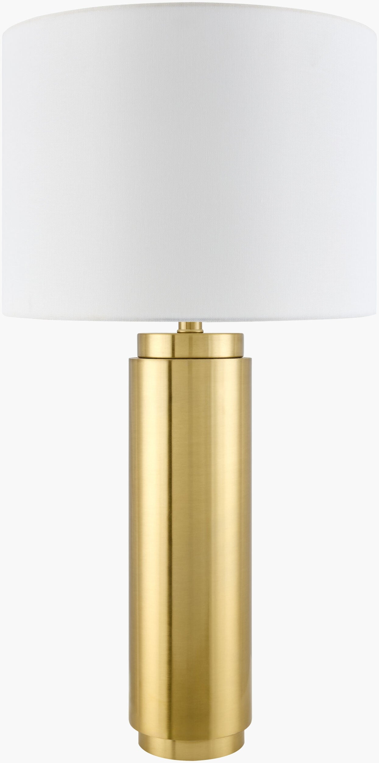 - Color(s): Body: Metallic - Brass Shade: White Finial: Metallic - Brass Harp: Metallic - Brass Cord: Translucent