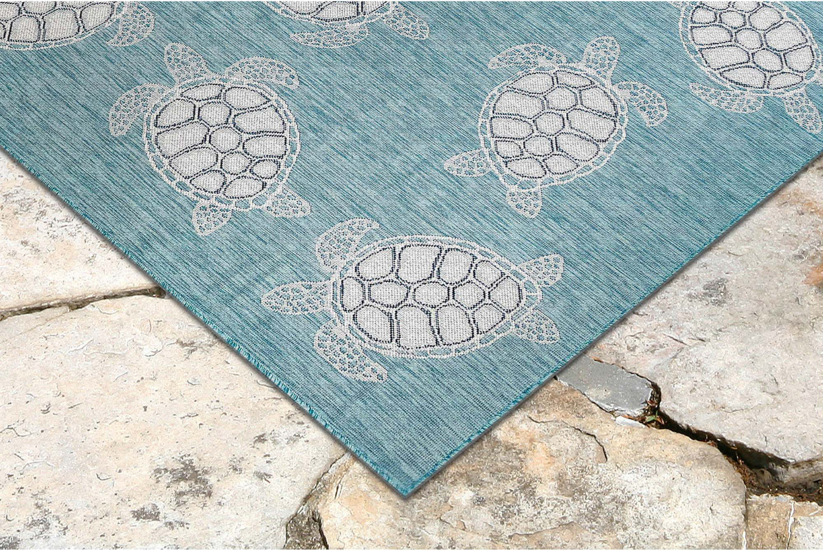 This simple, relaxed coastal design featuring lovely sea turtles in earth tones adds texture and warmth to any indoor or outdoor living space of the home, in blue. Wilton Woven of weather-resistant polypropylene, this flatwoven collection has subtle and natural beauty. There is no need to sacrifice style with these versatile rugs. The low-profile nature of Carmel offers a casual, lifestyle look to use nearly anywhere inside or outside the home.
