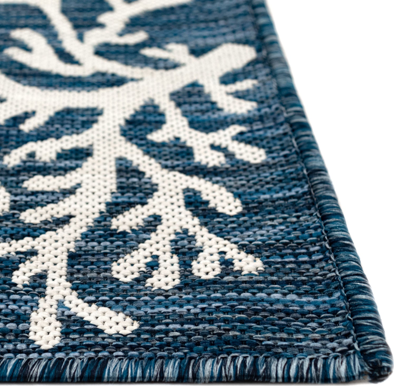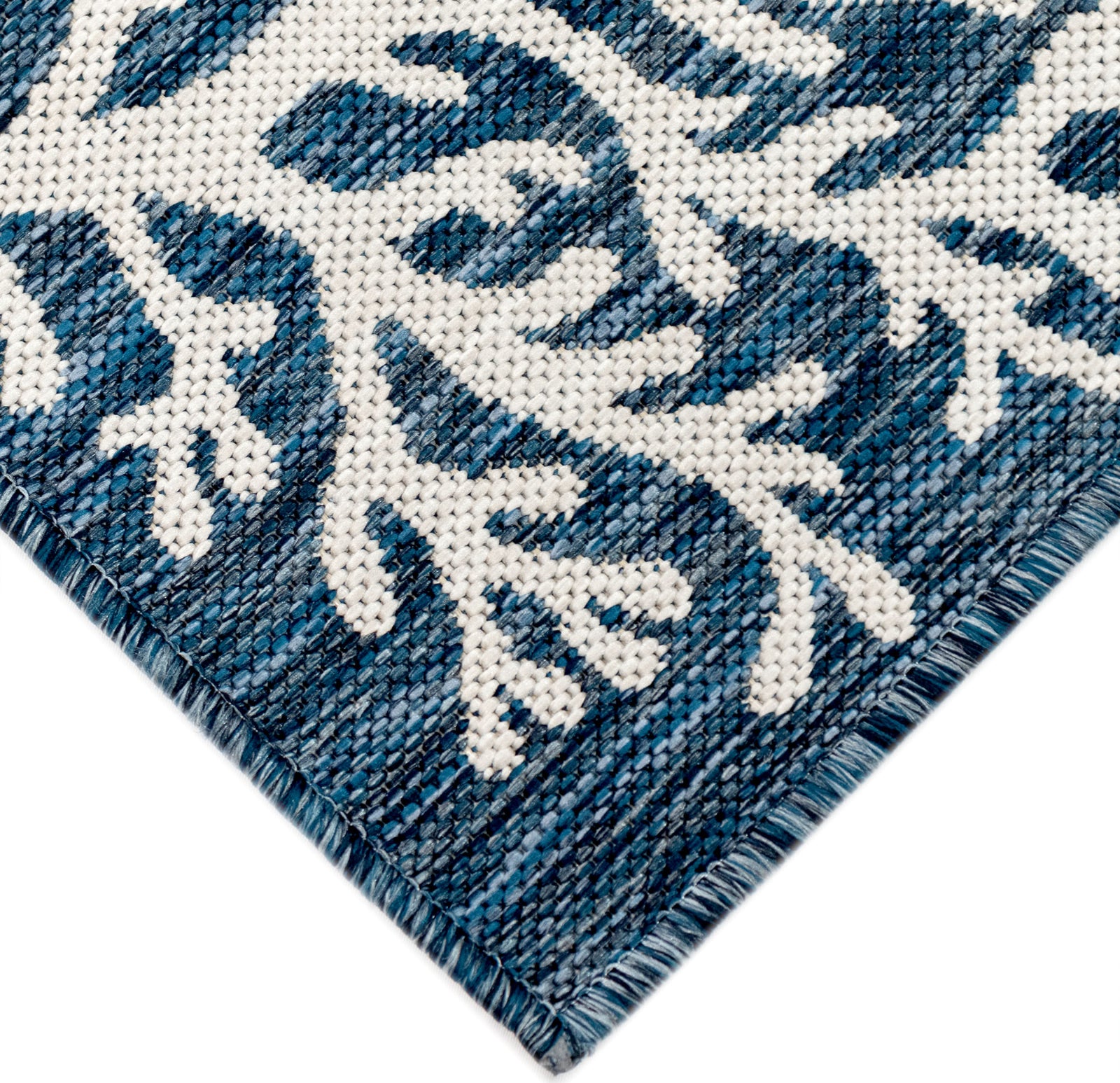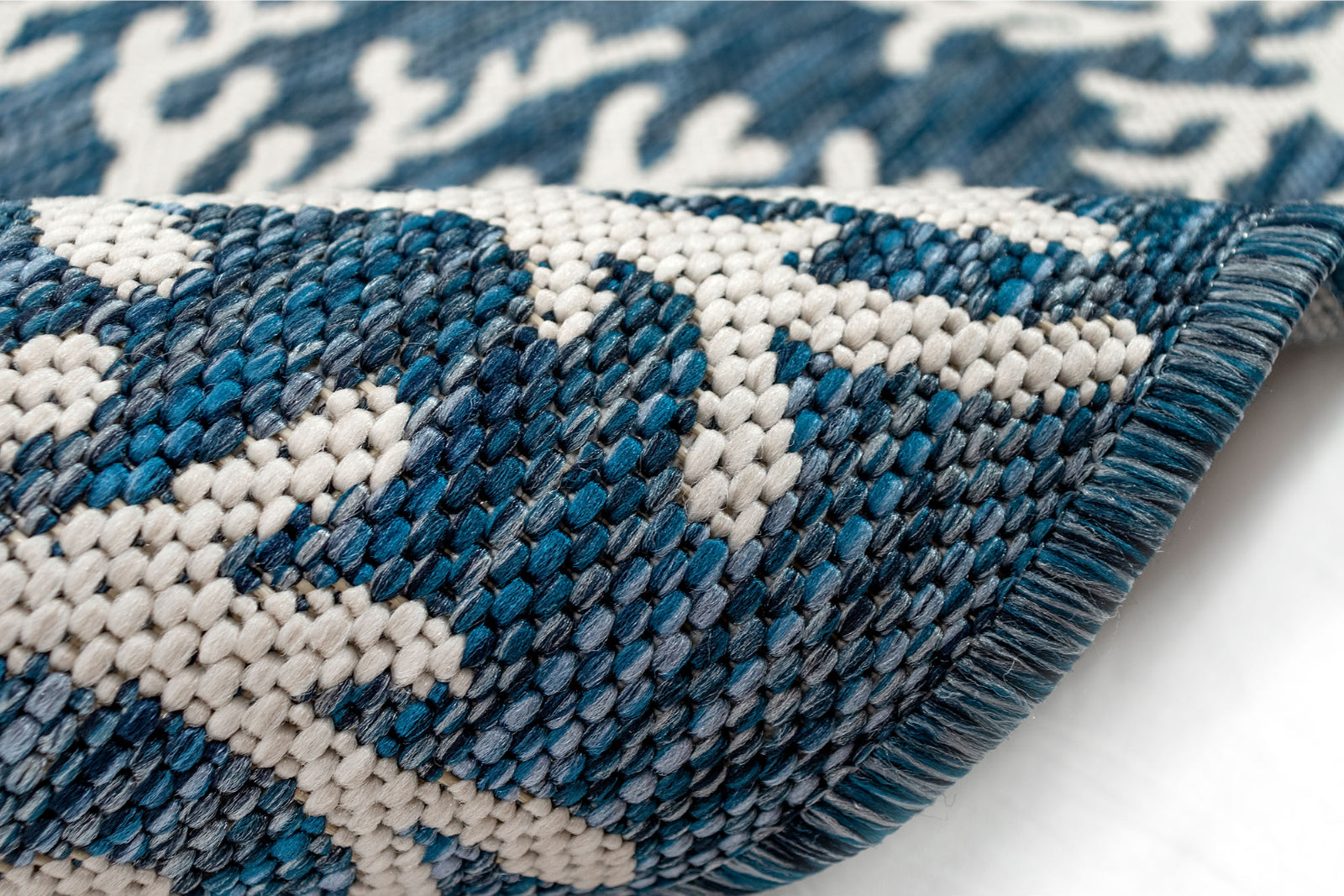 Casual and easy care, our Coral Border rug is a perfect decorating solution either indoors or outdoors. Wilton woven of 100% polypropylene fibers, it can be hosed off for easy cleaning. Fibers are UV stabilized to minimize fading, in blue. Wilton Woven of weather-resistant polypropylene, this flatwoven collection has subtle and natural beauty. There is no need to sacrifice style with these versatile rugs. The low-profile nature of Carmel offers a casual, lifestyle look to use nearly anywhere inside or outside the home.