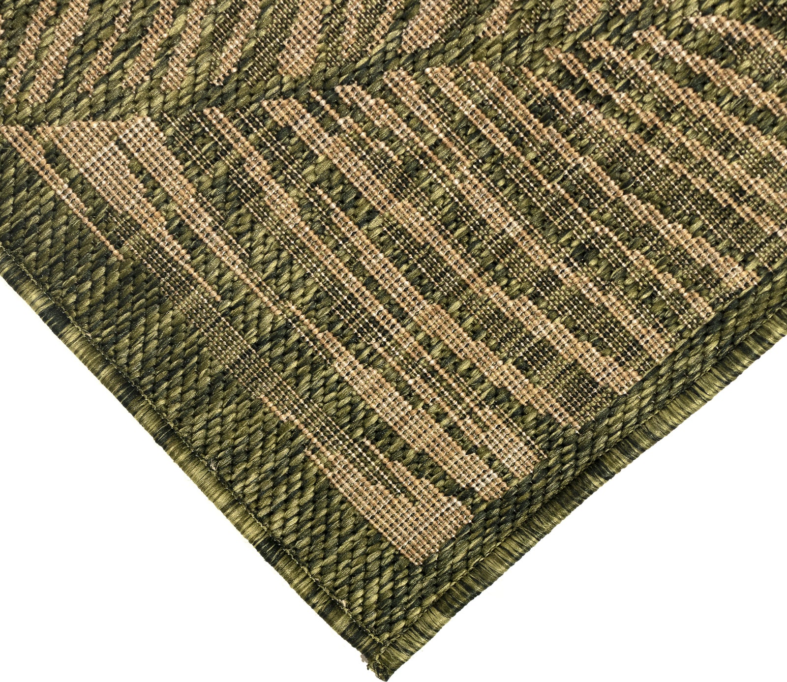 The details of the Fronds design of gentle palm trees create a tropical vibe to any d?cor for any room in the home, or outdoors on a patio, deck or sunroom, in green. Wilton Woven of weather-resistant polypropylene, this flatwoven collection has subtle and natural beauty. There is no need to sacrifice style with these versatile rugs. The low-profile nature of Carmel offers a casual, lifestyle look to use nearly anywhere inside or outside the home.