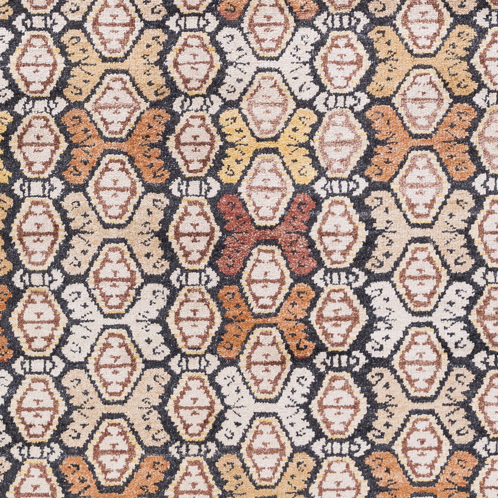 Our rugs from the Zambia Collection feature striking global inspired designs that endure at the forefront of contemporary trends. With their hand knotted construction, these rugs provide a durability that can not be found in other handmade constructions, and boasts the ability to be thoroughly cleaned as it contains no chemicals that react to water, such as glue. Made with Viscose, Wool in India, and has Medium Pile. Spot Clean Only, One Year Limited Warranty.